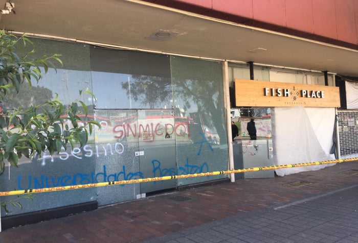 Yuner comentó que los ventanales y la puerta trasera del Fish Place quedaron pintados vueltos nada, y les tocará en este puente festivo encomendarse a todos los santos para retocar la fachada y borrar los grafitis.