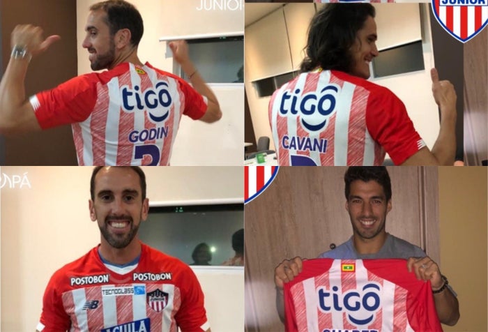 El jueves en la noche, antes del partido de la selección Colombia, el Junior presumió en sus redes sociales las fotos de Luis Suárez, Diego Godín y Edinson Cavani (referentes de Uruguay) con camisetas personalizadas del club barranquillero , enviadas por el arquero Sebastián Viera, compatriota de los tres. Cada prenda tiene el dorsal y el apellido del jugador. Eso sí, Suárez fue el único que no se la puso.