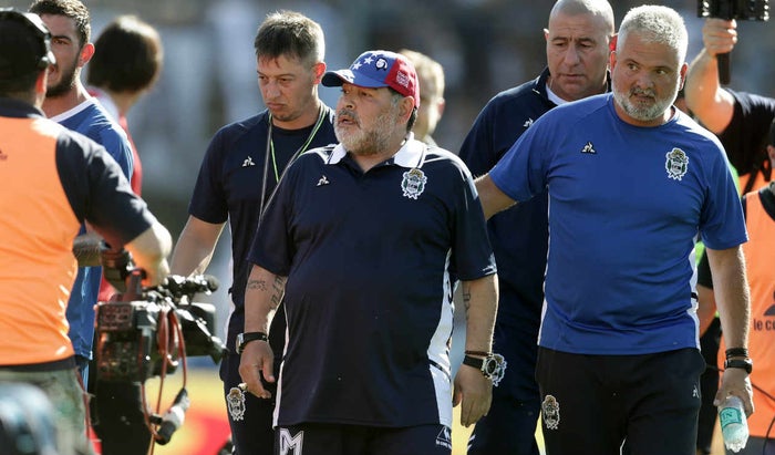 Maradona, que el viernes cumplió 60 años, estuvo ese día en la cancha de Gimnasia y Esgrima La Plata, lució introspectivo y sus movimientos resultaron lentos, y se retiró del estadio apenas comenzó el partido.
