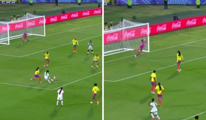 El primer tiempo del partido estuvo lleno de varios momentos importantes y, sin duda, una de las protagonistas fue la portera colombiana Luisa Agudelo, quien sobre el minuto 28 evitó el primer gol de las visitantes.