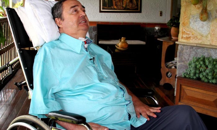 Hace quince años, Luis Fernando Montoya quedó cuadripléjico al recibir dos disparos por parte de unos delincuentes que iban a robar a su esposa en su vivienda en Caldas. Ahora vive en una finca de esta localidad del sur del Valle de Aburrá.
