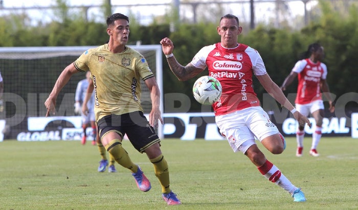 La jornada del jueves en la Liga Betplay dio inicio con el duelo entre Águilas Doradas e Independiente Santa Fe, el cual se disputó en el estadio Alberto Grisales y finalizó con un empate 2-2.