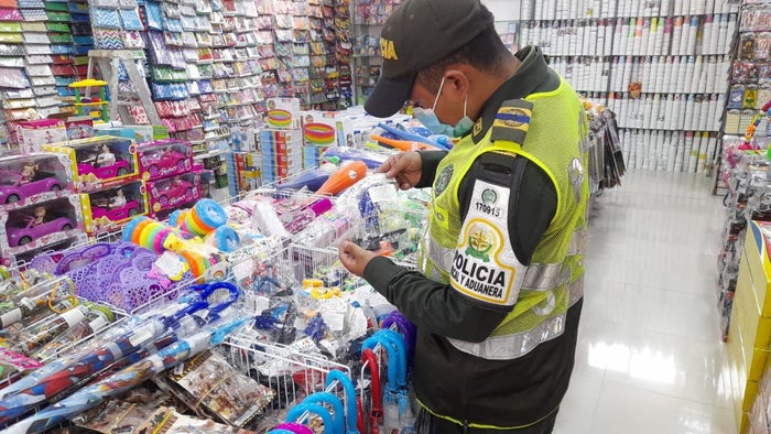 En un operativo conjunto de la Policía Fiscal y Aduanera y la Superintendencia de Industria y Comercio fueron incautados más 5.900 juguetes que no cumplían las normatividades técnicas de salubridad, y que podrían poner el peligro la vida y la salud de los menores de edad.