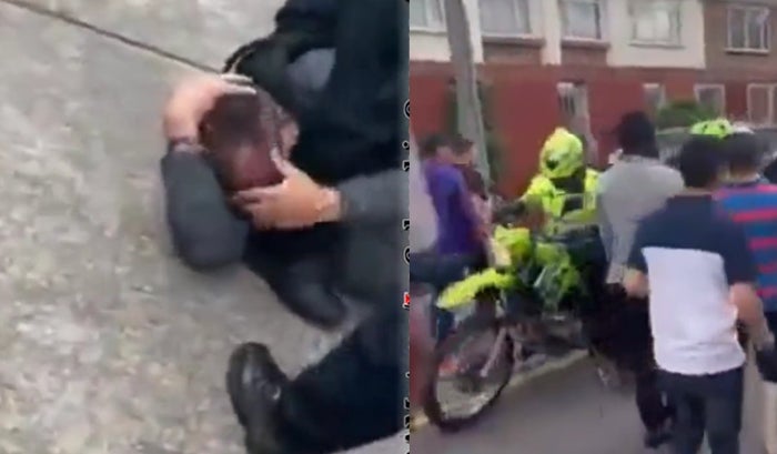 Según se ve en un video realizado por testigos, varias personas le pegan patadas al presunto delincuente en la cabeza. Luego de esta agresión se ve al sujeto en el piso lleno de sangre y la policía levantándolo para posteriormente llevarlo al CAI, luego de que le encontraron en su poder una pistola.