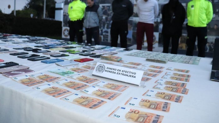 Así mismo, se les incautó dinero en efectivo: $37’601.000 de pesos, $5.175 Euros y $4.563 Dólares. También se hallaron documentos de identidad que, al parecer, habían sido robados y podrían haber sido utilizados para cometer otros delitos.