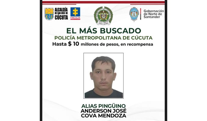 El coronel Reyes recordó que por la captura de Cova Mendoza se ofrecía una recompensa de hasta 10 millones de pesos, la cual se hizo efectiva con la detención de este hombre, quien se encontraba en el cartel de los diez delincuentes más buscados en Norte de Santander.