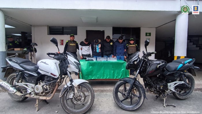 De acuerdo con las pruebas en poder de las autoridades, se trata de los ‘motoladrones’, una red delictiva señalada de varios hurtos. El más reciente hecho que se les atribuye, presuntamente, el atraco a un ciudadano que hablaba por teléfono móvil en el centro de Bogotá.