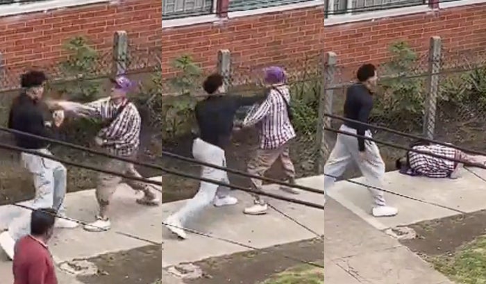 En un momento, el ladrón intentó atacar lanzando un fuerte puñetazo, pero el ciudadano hábilmente lo esquivó y respondió con un golpe contundente en el rostro. El agresor cayó al suelo de manera aparatosa, desmayado por el impacto del golpe, mientras los transeúntes observaban la escena.