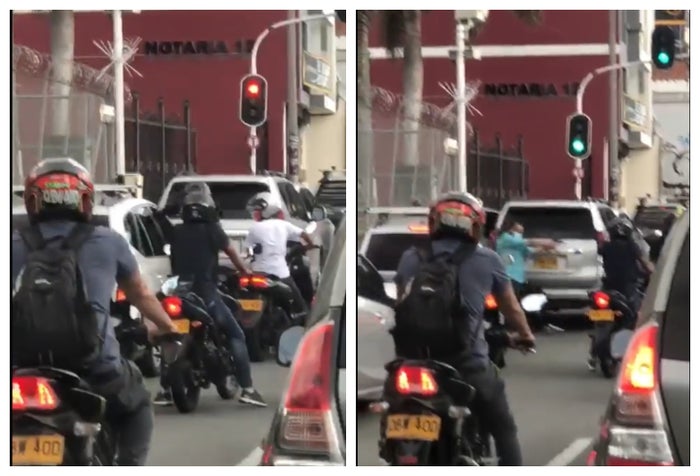 En las imágenes, que fueron grabadas por un conductor que se encontraba algunos carros atrás, se puede ver cuando los hombres increpan al copiloto del vehículo.