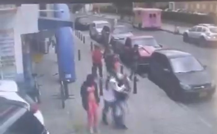 El incidente quedó registrado en un video en el que se puede observar cómo los habitantes del lugar actuaron rápidamente para proteger a la mujer de 45 años.