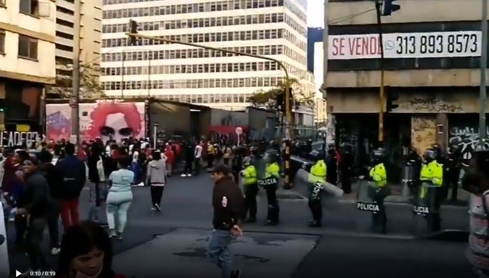 Interrumpida estuvo este martes la movilidad en el centro de Bogotá sobre la avenida Caracas, a la altura de la calle 22, a causa de una manifestación de cientos de personas que aseguraron que fueron desalojadas por la falta de dinero para pagar lo del arriendo.