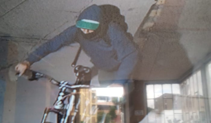 Las cámaras de seguridad del conjunto captaron el momento en que un sujeto, vestido con una gorra de colores vivos, chaqueta negra, pantalón oscuro y bufanda que cubría su rostro, ingresaba al complejo residencial como si fuera un residente más. El vigilante le abrió la puerta y el individuo, tras saludarlo, siguió caminando rápidamente hacia una de las torres. Utilizando una herramienta, rompió las cadenas con las que estaba asegurada la bicicleta.
