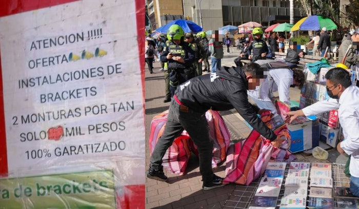 Allí se hallaron y desmantelaron tres consultorios de odontología ilegales que, desde carretas instaladas en el espacio público, ofrecían servicios odontológicos como instalación de brackets, limpiezas y otros procedimientos.