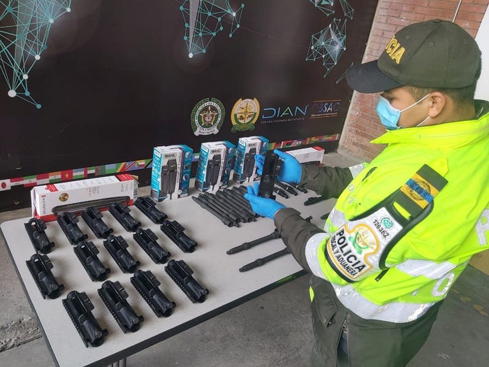 “Estas armas son rearmadas en las ciudades de Bogotá, Cali y Medellín y son vendidas a grupos organizados. Durante el 2021 hemos realizado 15 procedimientos en el Aeropuerto el Dorado que han permitido la incautación de siete fusiles, seis pistolas, dos revólveres y más de 195 partes, entre ellas proveedores y cañones”, afirmó el Coronel.
