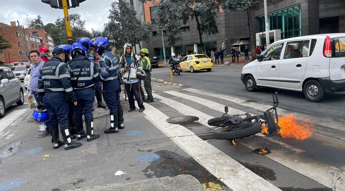Sujeto en Bogotá incendió su ciclomotor para evitar que la Policía se lo llevara