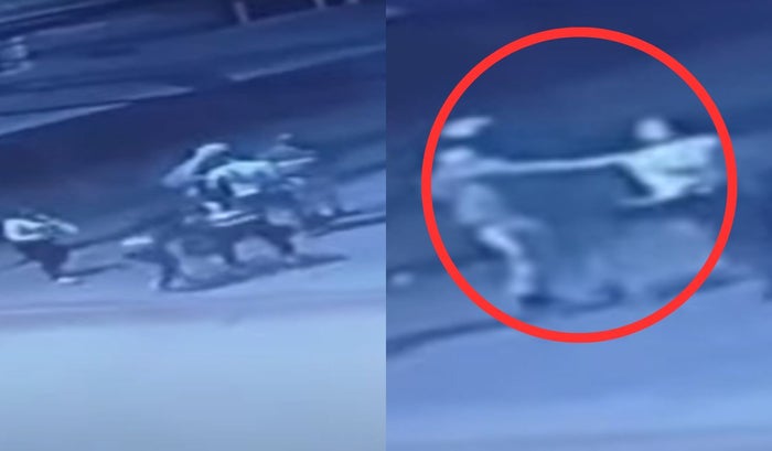 Sin embargo, pocos minutos después se ve como estos individuos, de los que aún no se conoce su identidad, empiezan a golpear fuertemente a la mujer y a su novio para intentar robarles las pertenencias de valor.