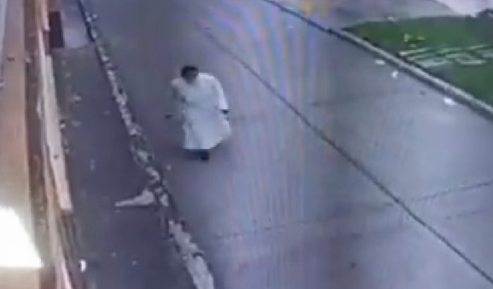 En un video captado por una cámara de seguridad instalada en lo más alto de un poste de la energía eléctrica, se observa cómo el pillo, luciendo una vistosa sudadera de marca de color rojo ‘chiviada’ se le acerca a la monja de 71 años de edad, para lastimarla y empujarla sobre el asfalto de la vía en medio del robo del maletín y teléfono celular de la hermana.