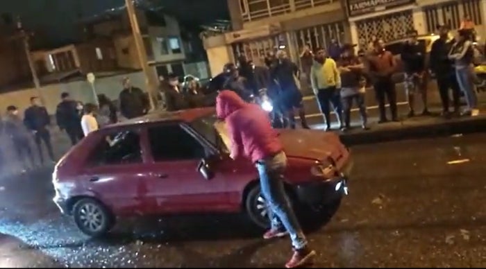 Mientras tanto, el vehículo en el que se movilizaban los delincuentes quedó abandonado en la vía pública por lo que fue vandalizado y destruido a punta de piedras y palos e incendiado por varios ciudadanos indignados por la grave situación de inseguridad que vive la ciudad.