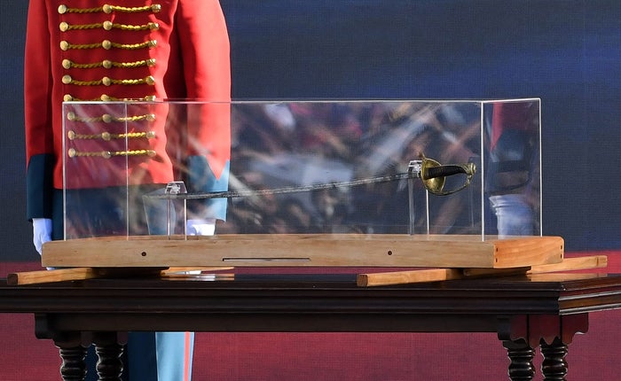 La espada adquirió relevancia en el mandato del presidente Gustavo Petro, quien solicitó su traslado para ser parte especial de su ceremonia de posesión el 7 de agosto del 2022. La espada fue robada por este grupo guerrillero el 17 de enero de 1974 y devuelta hasta 1991, por Antonio Navarro Wolff.