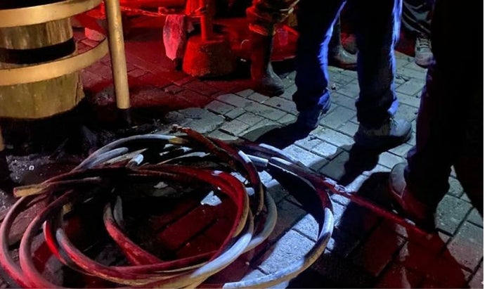 Según las autoridades, estos sujetos, aprovechando ser empleados de esta empresa, fueron sorprendidos extrayendo de manera ilegal cableado de telefonía de una de las alcantarillas de la Carrera 77 R con Calle 50 Sur, en el barrio el Socorro.