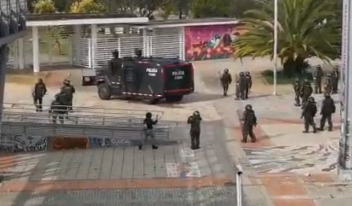 Precisamente una nueva movilización en el que una multitud de personas se desplazan por la carrera séptima, al parecer con destino hasta la Plaza de Bolívar, se vio empañada por el vandalismo. La misma situación ocurrió con las protestas que se realizaban en la calle 26 a la altura de la Universidad Nacional.