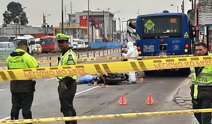 Choque de moto, camión y bus deja un motociclista sin vida en Puente Aranda
