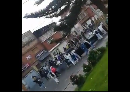 En las imágenes se logra observar que mientras algunas personas levantan las gradas con que protegen el CAI, otros realizan cánticos de su equipo de fútbol.