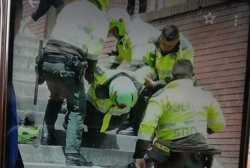 Momento en que es atendido un policía atacado en el sur de Bogotá