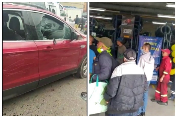 En un video divulgado en redes sociales, se ve una camioneta vinotinto que estaba parqueada frente al establecimiento comercial, con todos los vidrios completamente partidos, al parecer, tras los impactos de bala.