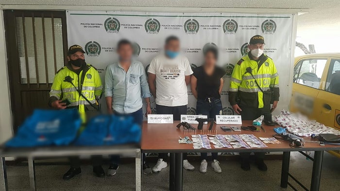 La ‘chimba’ enfermera, luciendo aún los zapatos color blanco como auxiliar de medicina y sus dos compinches de la banda ‘Los Matasanos’, fueron bajados de un taxi donde huían con el botín junto a un estetoscopio, un termómetro, un aparato para medir la presión, una pistola, un revolver y varios celulares.