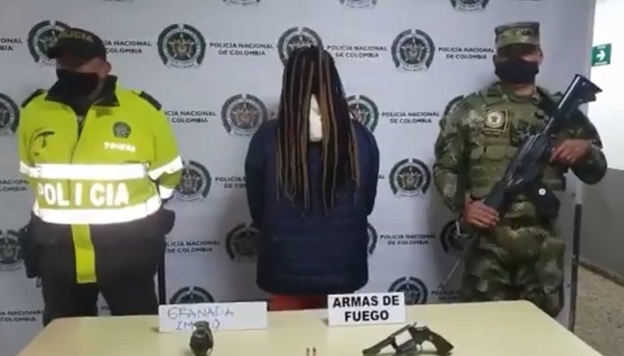 La jovencita afrodescendiente, de quien no se dio a conocer su identidad, llevaba escondido en sus ropas una potente granada de fragmentación, tremendo revolver y munición ‘a la lata’, en el momento que la vieja caminaba solitaria por una de las calles del barrio Tocaimita de la localidad Usme.