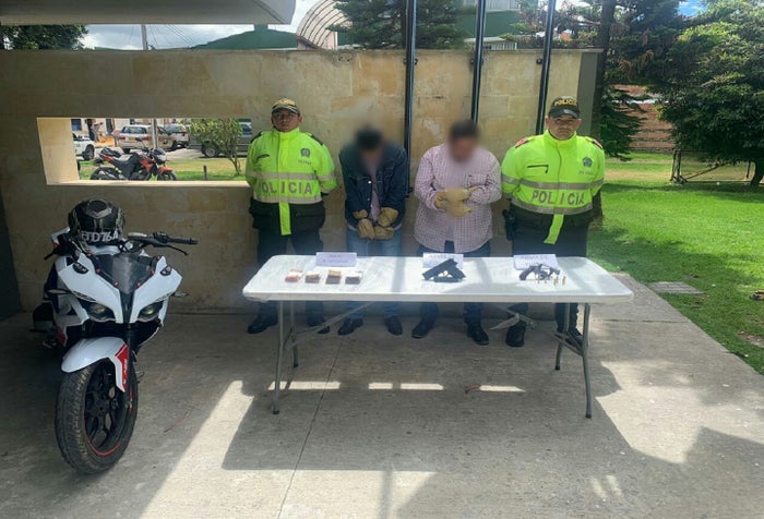 Una vez reducidos los criminales, las autoridades decomisaron dos armas de fuego y la moto en la que pretendían escapar los delincuentes.