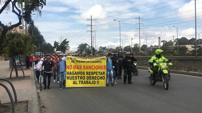 Las marchas de los transportadores se prolongaron hasta horas de la tarde en las zonas de Guacamayas en la localidad de Usme, Suba, Soacha y las autopistas norte y sur.