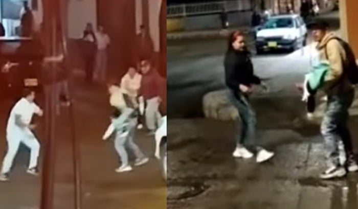 El hecho se registró en el sur de Bogotá, y en el audiovisual se ve que uno de los individuos se envuelve lo que parece ser una chaqueta en un brazo para evitar las lesiones en el ataque.
