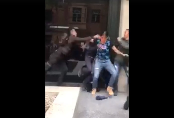 Pese a esto, todo se sale de control cuando los malandros se abalanzan contra quienes les reclaman haciendo uso de puños, patadas e incluso uno de ellos amenaza puñal en la mano, lo que desencadena una batalla campal en que hombres y mujeres se golpean por igual.
