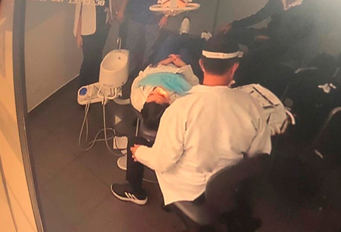 Foto del video revelado de las cámaras de seguridad Aida Merlano, excongresista, practicándose un diseño de sonrisa en Bogotá antes de fugarse
