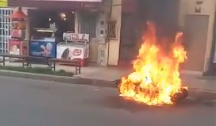 Al tipo lo encendieron a pata y puño, ocasionándole una abertura en la parte alta de la ceja y luego le rociaron gasolina al bólido para seguidamente prenderle candela, dejando el elemento de dos ruedas hecho una bola de fuego.