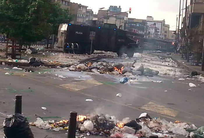 El centro de Bogotá en medio de los disturbios protagonizados por comerciantes