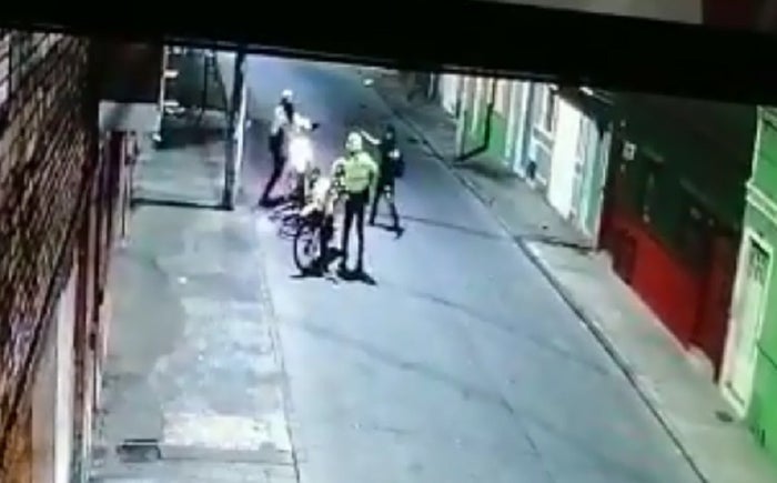 Tras bajarse los policías de la moto oficial, el individuo en un ‘abrir y cerrar de ojos’ sacó de la pretina del pantalón una pistola para encender a plomo a los agentes y así emprender la huida.