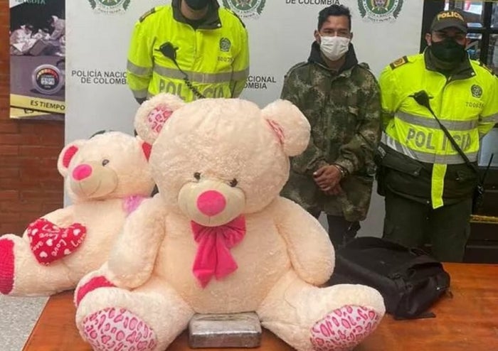 Un ciudadano extranjero fue pillado en el momento que por medio de una encomienda en el aeropuerto Internacional El Dorado intentaba enviar desde Bogotá a la ciudad de Leticia, en el departamento del Amazonas, dos tiernos osos de peluche rellenos de marihuana.