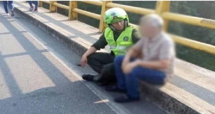 De inmediato una patrulla de la Policía es alertada, y se acerca hasta el lugar señalado hallando al señor listo para lanzarse. Los uniformados se acercaron a él intentado persuadirlo con mensajes y consejos de reflexión tratando de desestimular la decisión.