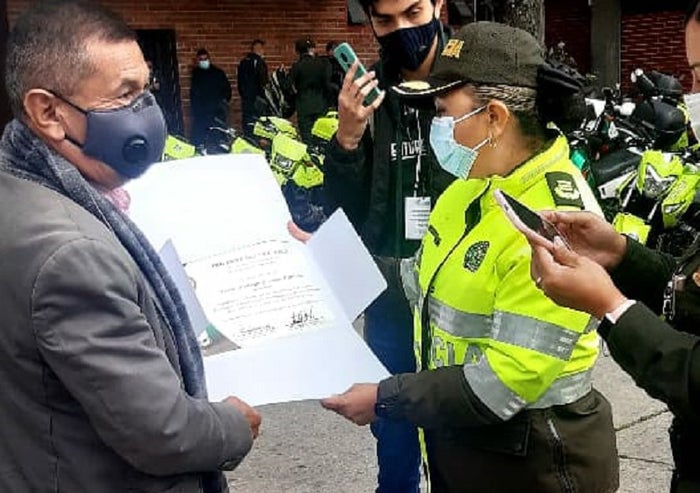 La coronel Alba Patricia Lancheros, jefe de prevención y seguridad ciudadana hizo entrega de la distinción que va firmada por el propio comandante de la Policía Metropolitana de Bogotá (Mebog), Mayor General, Óscar Antonio Gómez Heredia y de la teniente Lina Marcela Cristancho López, como jefe de comunicaciones estratégicas de la institución en la capital del país.