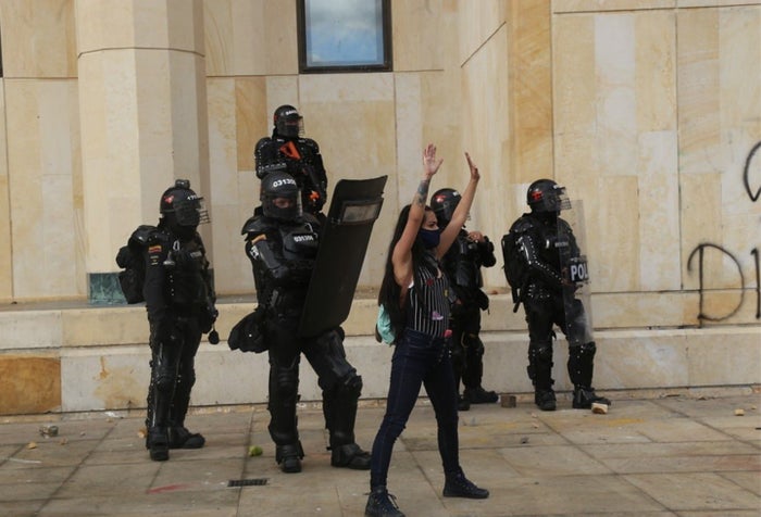 Esto ocurrió cerca a la Plaza de Bolívar de Bogotá minutos después de que empezaron las confrontación entre manifestantes y miembros del Esmad.
