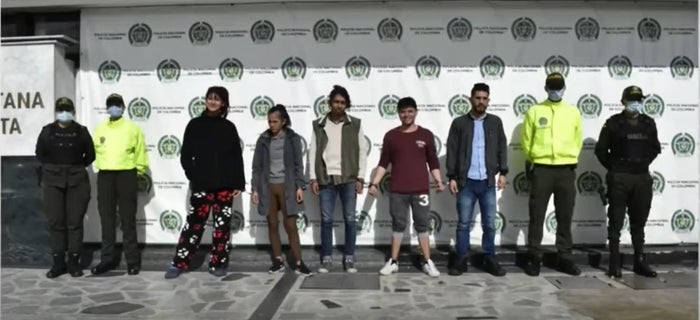 Indignación ha causado la foto de la captura de cinco presuntos integrantes de la primera línea, que habrían cometido actos vandálicos contra el transporte público en la localidad de Suba.