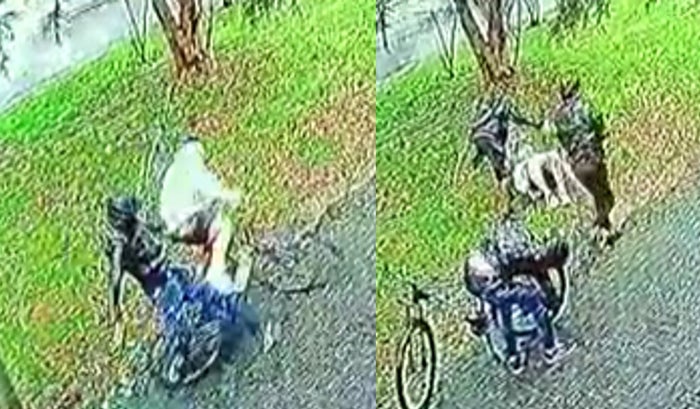 En principio todo parece un accidente simple, pero rápidamente llegan otros dos sujetos que amenazan al ciclista para quitarle sus pertenencias.
