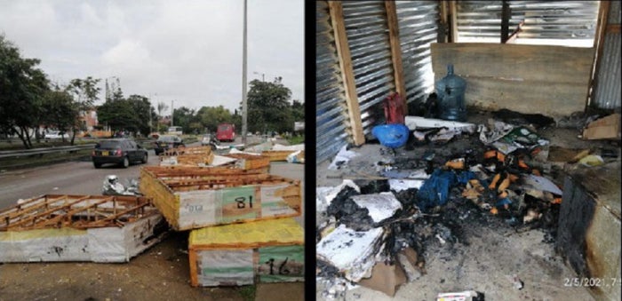 Los actos vandálicos en las instalaciones de la obra se extendieron por cuatro horas. En ese lapso, fueron hurtados equipos de cómputo, impresoras, insumos de papelería y dotación y elementos de protección personal y de bioseguridad como arneses, overoles, botas, tapabocas, geles desinfectantes y alcohol.
