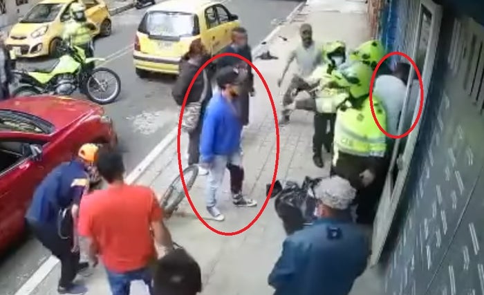 Un video de una cámara de seguridad instalada en una de las calles, grabó el momento en el que el delincuente cansado de huir, deja de correr para quitarse su chaqueta y el tapabocas y justo en ese momento el conductor del vehículo de servicio público se detiene a su lado, y a pesar de tener una herida de bala en su pierna izquierda, se baja del carro y sale corriendo hacia donde este el sujeto para agredirlo sin importarle que ya un policía lo estaba arrestando.