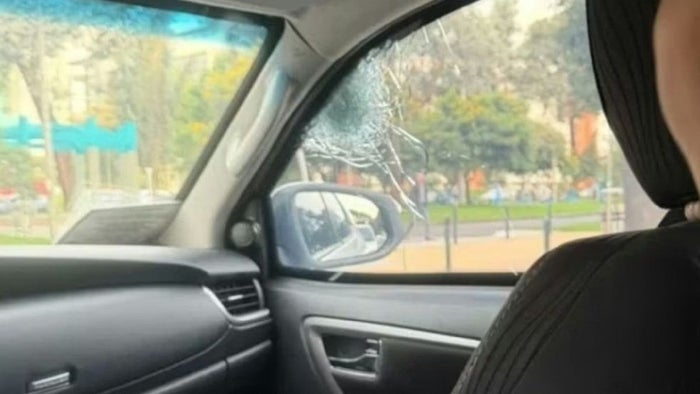 Uno de los impactos quedó registrado en la puerta delantera del vehículo, lo que evidencia la gravedad del ataque.
