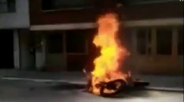 Al agarrado le dieron tan duro, que lo dejaron sin zapatos y sin su medio de transporte, porque se la incineraron.