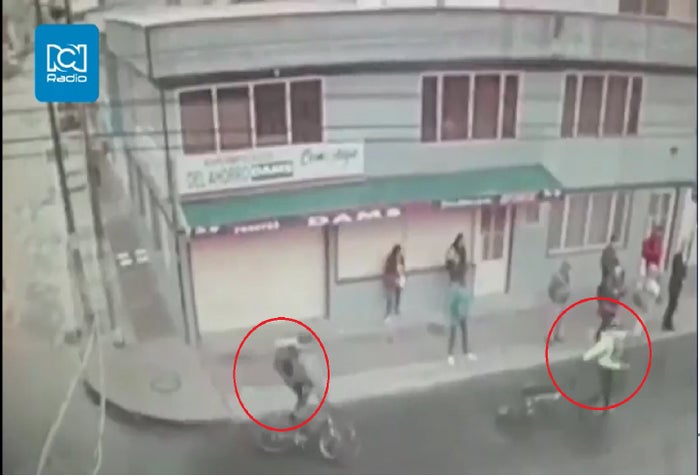 Los criminales arriban a la zona a bordo de sus bicicleta, se bajan de manera abrupta y proceden a intimidar y atracar a todas las personas que están en la zona, mientras amenazan con chuzarlos a todos.